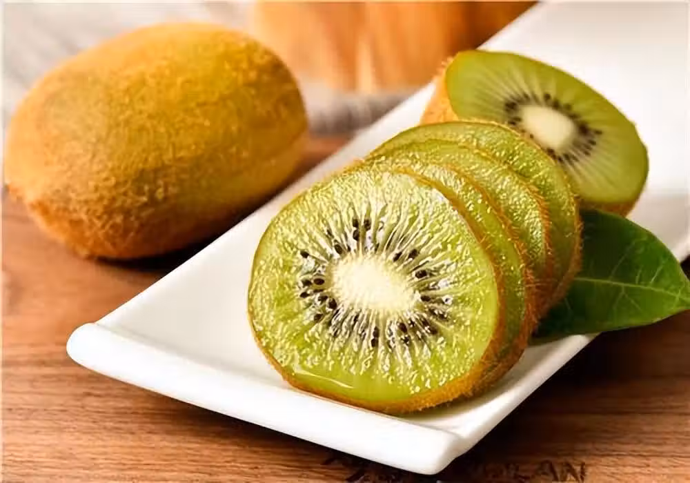 獼猴桃是一種營養價值極高的水果,其可溶性固形物含量為20%,含十多種胺基酸和豐富的礦物質。獼猴桃中的維生素C能有效抑制皮膚內多巴醌的氧化作用,使皮膚中深色氧化型色素轉化為還原型淺色素,干擾黑色素的形成,預防色素沉澱,從而保持皮膚白皙。