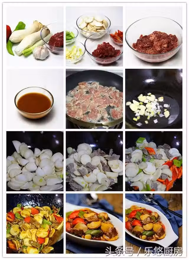 第八步:將牛肉片放入鍋中煸炒勻均。