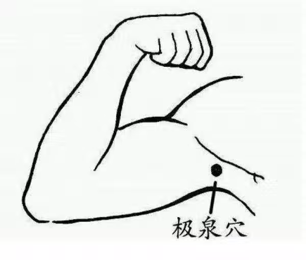 極泉穴:腋窩處有一個著名的穴位:極泉穴。針灸、按摩極泉穴都有著寬胸寧神的效果,可以有效的治療冠心病、心絞痛、腦血管後遺癥等循環系統的疾病。