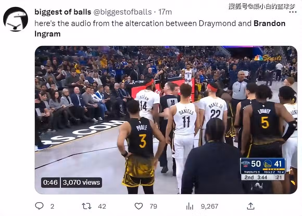 德雷蒙德-格林在第三節還剩3分44秒時也跟英格拉姆有一個身體接觸,他用手肘將鶯歌推出界外,隨後鶯歌找他理論,追夢暴怒後直接推搡了鶯歌,裁判最終給了鶯歌一個T,給了追夢一個T+一個一級惡意犯規。
