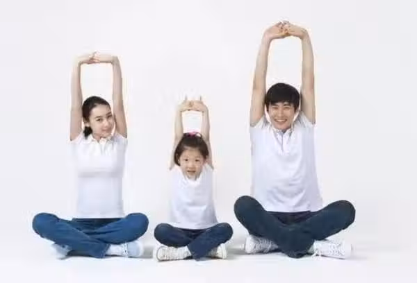 全身放鬆,處於端坐位,左手按於右腕上,兩手同時舉過頭頂,均勻呼吸。