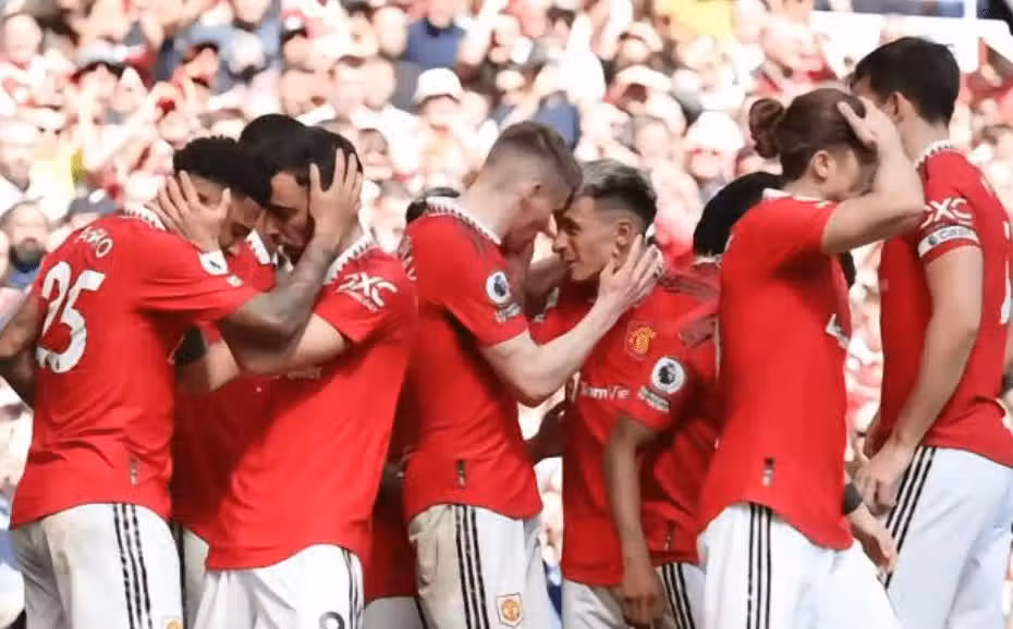上半場曼聯占據了絕對優勢,一共射門21次,可惜腳感欠佳,加上皮克福德表現神勇,屢次化解威脅。在拉什福德和安東尼各錯失了幾次絕佳機會,萬比薩卡踢丟空門良機後,第36分鐘,桑喬送出直塞,麥克托米奈插上爆射破門,幫助曼聯取得領先,