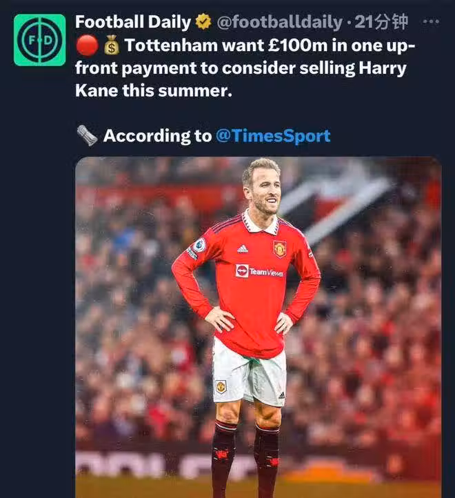 曼聯今年夏天簽下熱刺前鋒凱恩是他們的主要目標,拜仁慕尼黑不願意捲入價格戰。
