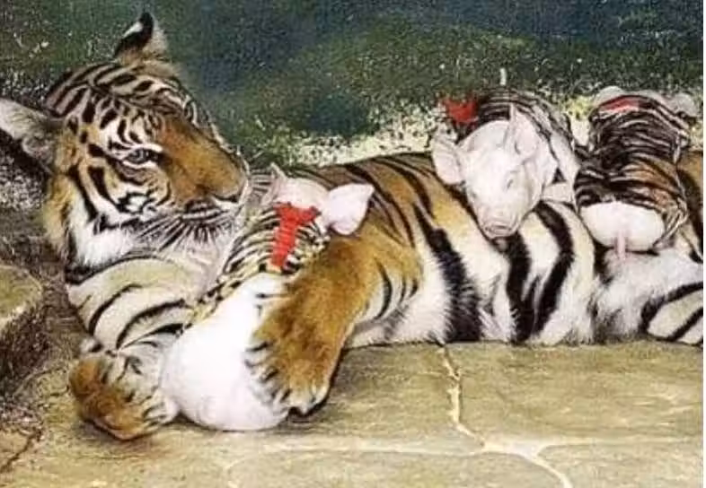 母老虎失去幼崽傷心絕食,飼養員找來「一窩豬崽」,沒過多久就後悔了