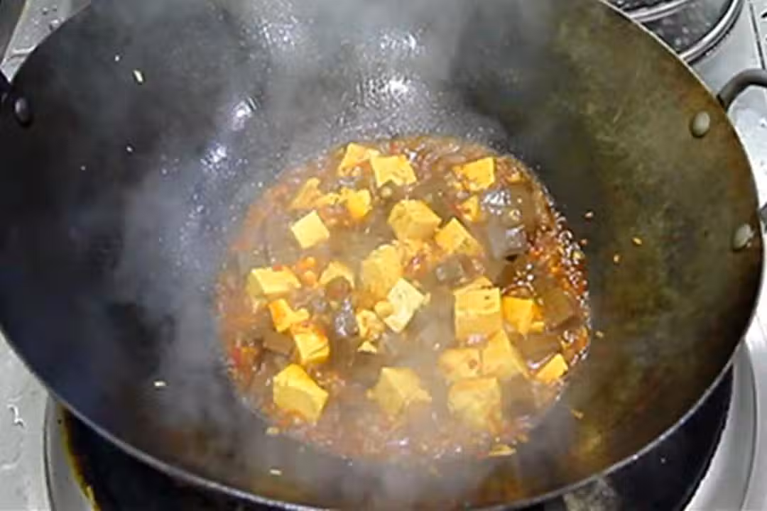 4.湯汁收濃以後撒上韭菜花、淋上花椒油,美味即成。