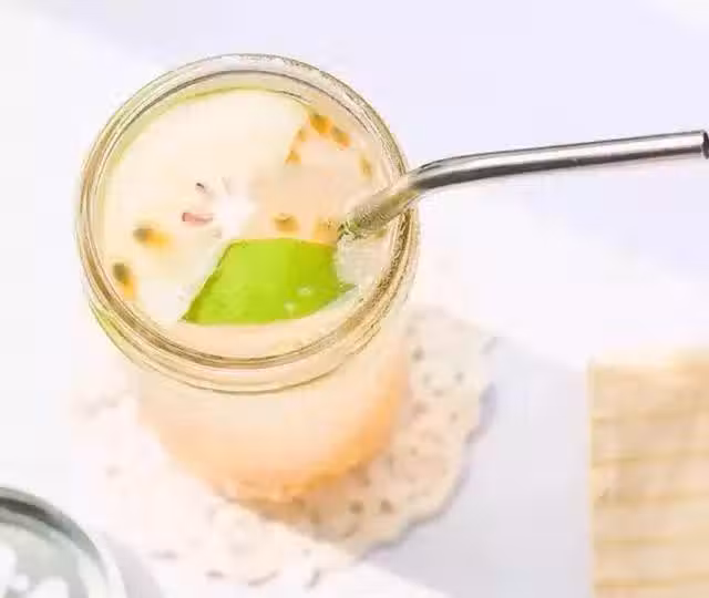 無核香水檸檬切個三四片,百香果對半切開,果肉挖出來,用量根據口味和加水量自己斟酌,當然要夠香濃才好喝;