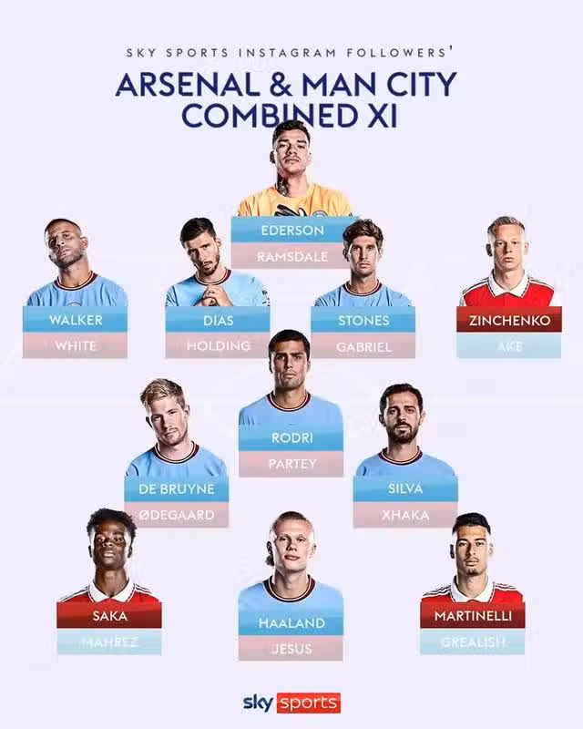 天空體育投票選出了阿森納和曼城的最強聯合首發11人陣容。