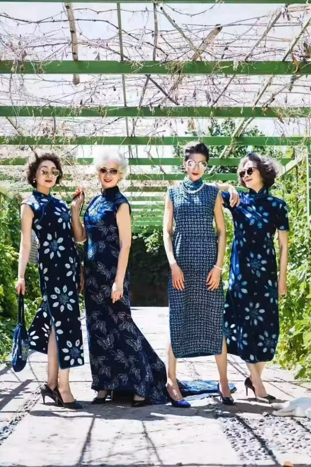 具有民族特色的藍色印染元素,時時刻刻都在訴說著她的不落俗套,原生態的美麗帶來最純粹的氣質。墨藍色與白色的組合乾淨清新又帶有小情調。它不具備華麗的氣質,卻能將美麗深深紮根在每個人的心田。無論是超長款還是中長款都能激發女性柔軟又堅毅的內在美。搭配一款黑色的高跟鞋,優雅地和最好的閨蜜站在一起,這一刻她們不像是是年事已高的奶奶,倒像是情犢初開的少女,明媚又多情。
