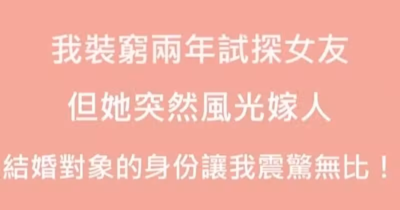 我家很富裕,我裝窮2年試探女友!她知道我家富裕後竟然要分手還突然風光嫁人,新郎的身份卻讓我震驚…我後悔