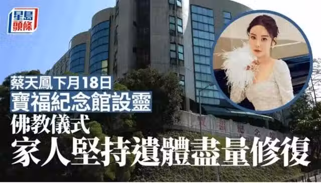 目前,她的家人懷著悲痛的心情發訃告,蔡天鳳的遺體將於下個月安葬,目前遺體還在整形修復中,蔡天鳳的喪禮不設瞻仰遺容。