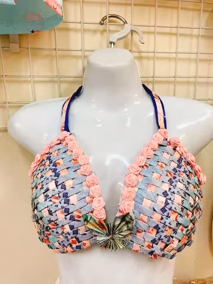 女網友解釋,媽媽跟她說,因為阿嬤沒有穿過「布啦夾」,所以想做一件給她,這次花費了半個多月,一樣是用紙鈔製作,複雜程度比上次的帽子更高,尤其配色更是高雅,很多網友看了都直呼:「天啊這根本藝術品!」、「太有心了吧!」、「阿嬤好幸福喔~女兒這麼孝順!」