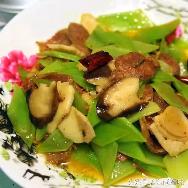 4、然後下萵筍快炒,萵筍變色即可調味出鍋。
