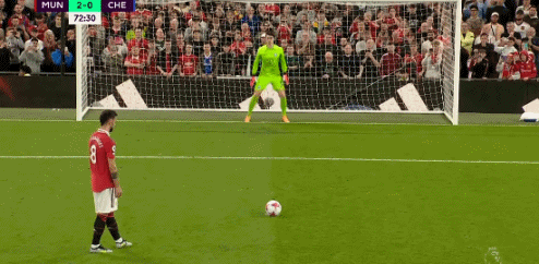 點球由B費親自主罰,他右腳推射球門右路,輕鬆騙過凱帕將球打進,曼聯3-0領先切爾西。
