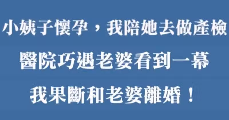 小姨子懷孕,我陪她去做產檢,醫院巧遇老婆看到這一幕,我果斷和老婆失婚