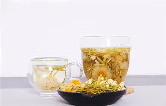 泡法:金銀花10克,菊花10克,茉莉花3克,加入沸水泡茶飲用。
