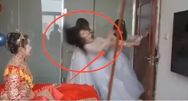 迎親現場伴娘擋門要紅包 伴郎不慎連人帶門踹飛