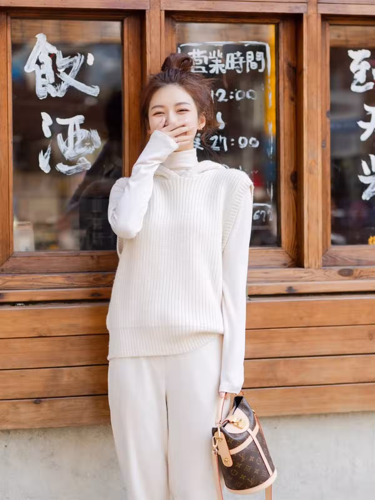 對於面對鏡頭害羞的女生,可以不要比剪刀手拍照姿勢,讓自己擺拍一個捂嘴偷笑的姿勢,這樣拍出來更顯羞澀和可愛,還能起到瘦臉自然的效果,一舉兩得,拍照很漂亮。