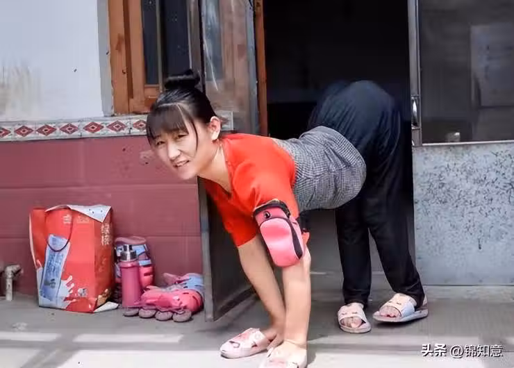 而因為長期趴在地上行走,為了防止手磨出血,她只能給手穿上鞋子。