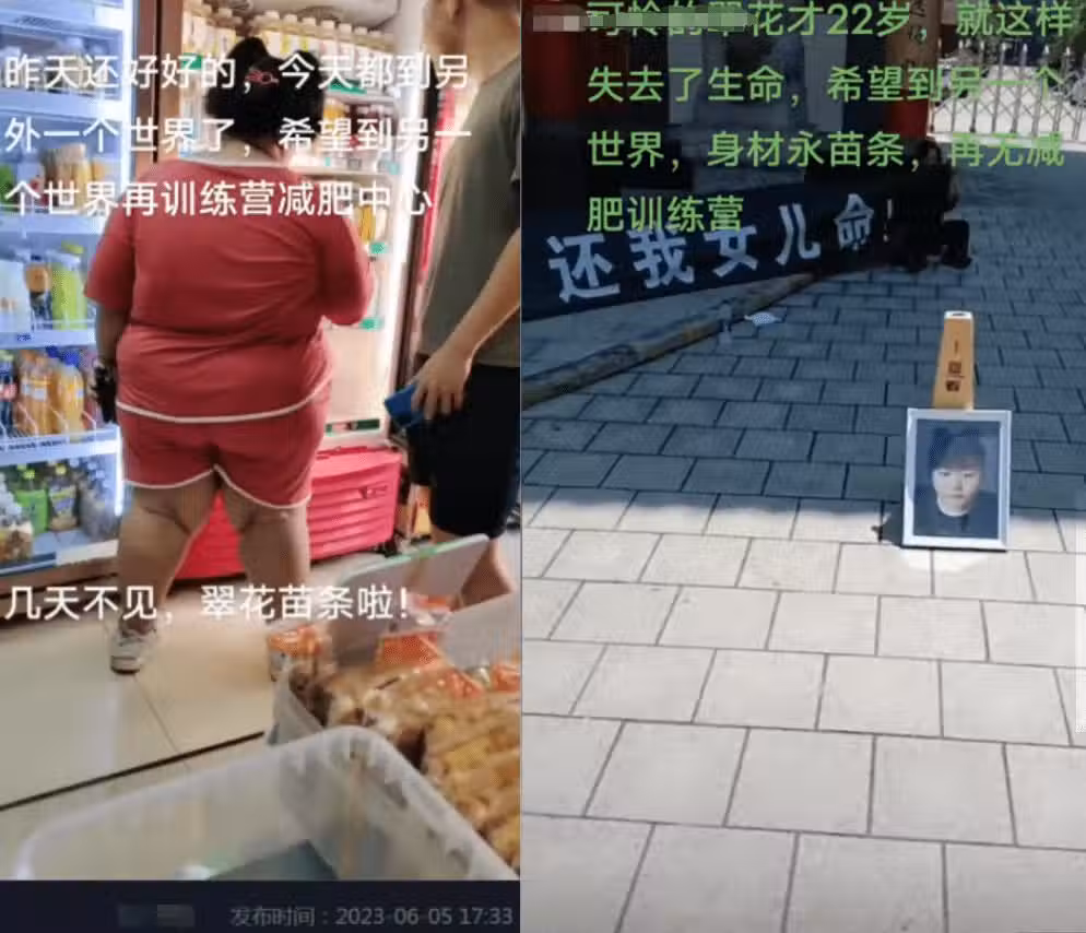 312斤網紅翠花減肥猝死,父母在訓練營門口擺遺照討要說法