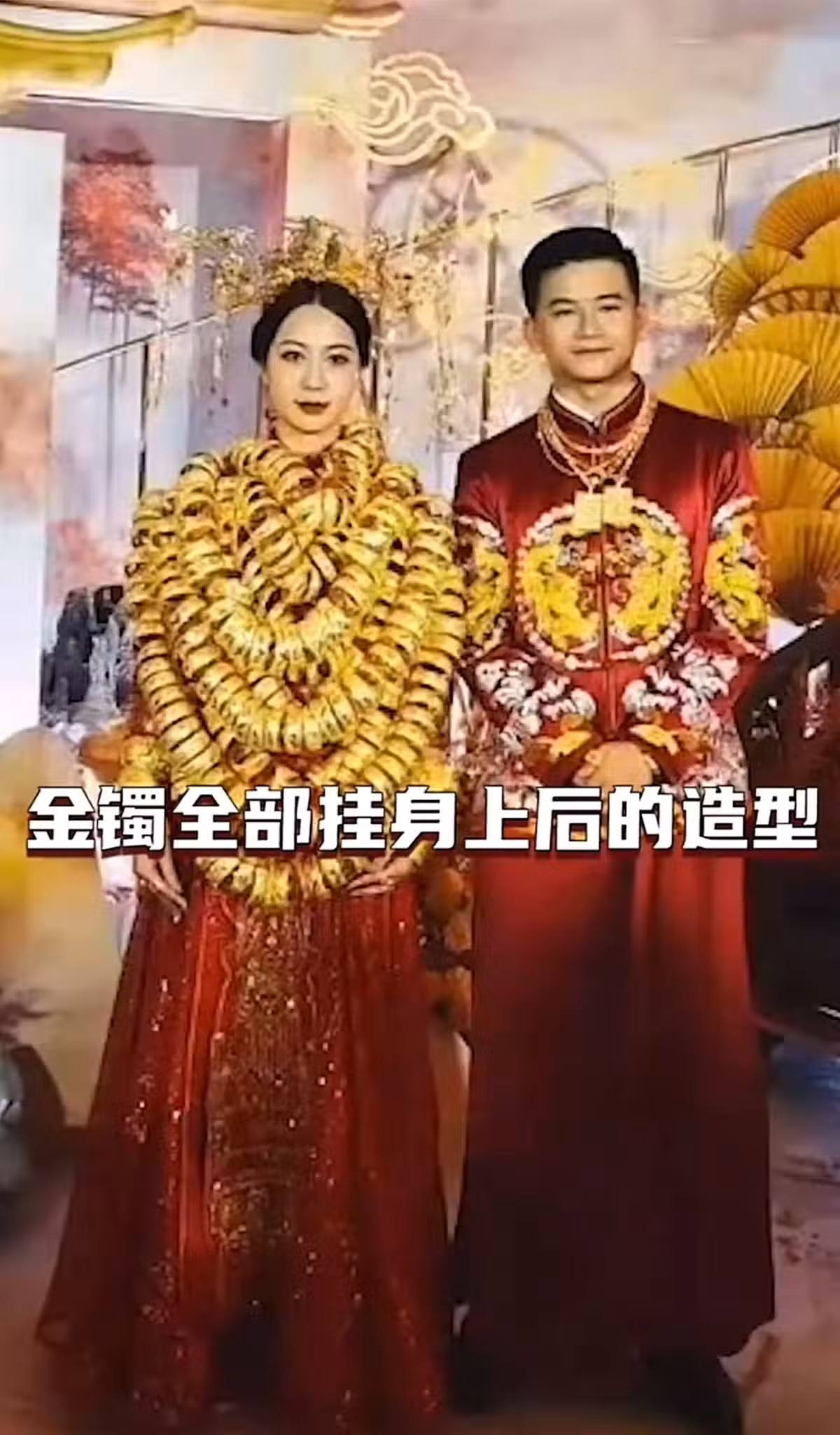 看出娘家財力!新娘結婚「全身蓋滿金手鐲」根本看不到