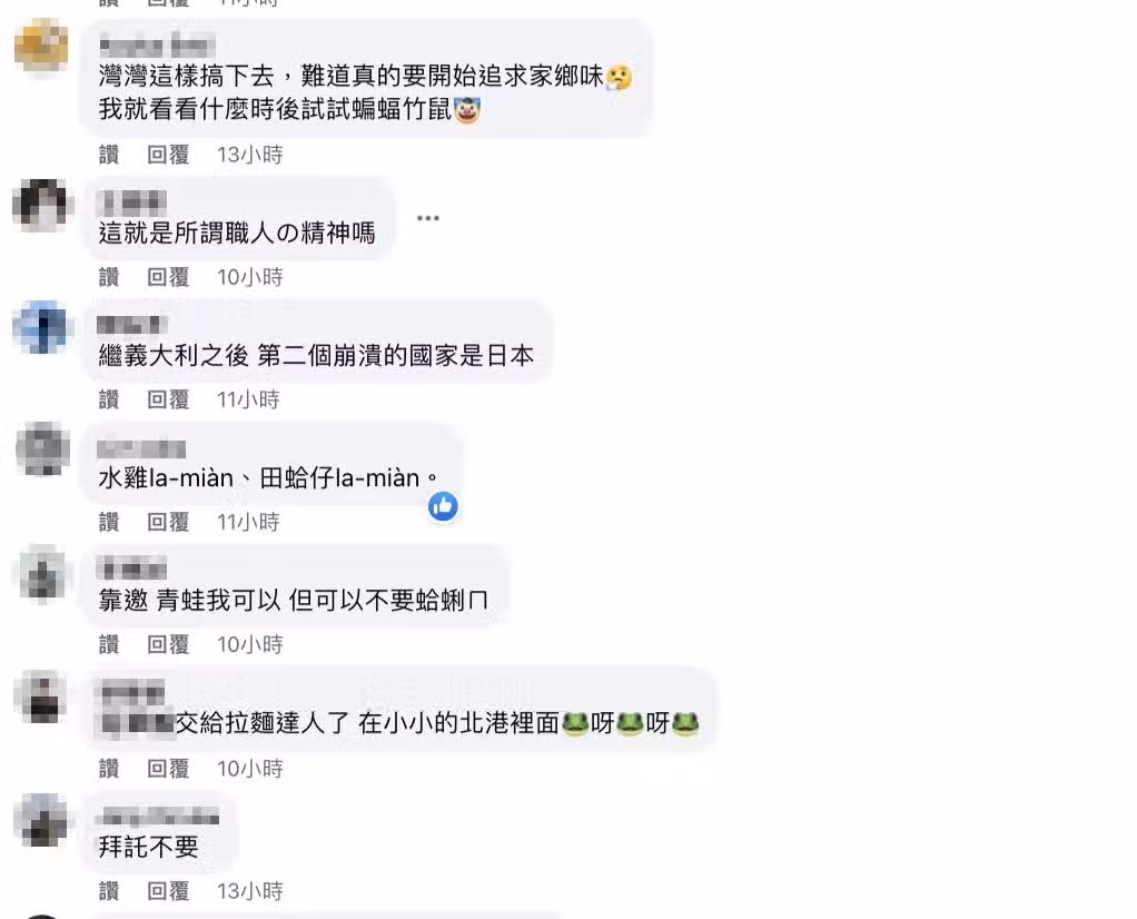 而繼大王足蟲拉麵在國際引發討論外,這碗青蛙拉麵也讓加拿大知名攝影師Josh Ellis在推特上發文「好吧,看來情勢『升級』了,雲林有家拉麵店在賣以魚湯做湯底的拉麵,上面放一隻完整的青蛙......一碗要新台幣250。比大王具足蟲拉麵便宜多了啦,但還是......」看來還是難以接受。