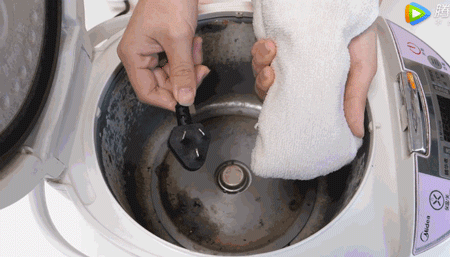 記住,不要直接倒水進發熱盤,而是用沾濕的牙刷帶著牙膏輕輕刷,刷完後,用濕抹布把殘留膏體擦除。