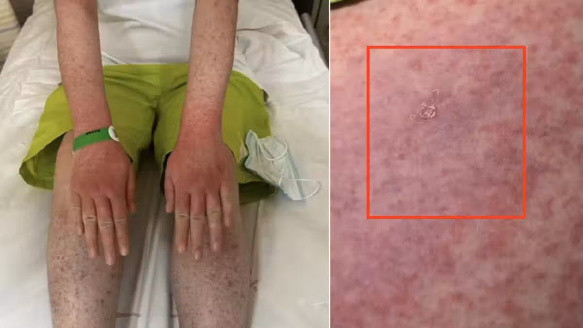 ▲ 女子全身突然長滿紅疹,臉部更是紅到發紫(圖/翻攝自微博)