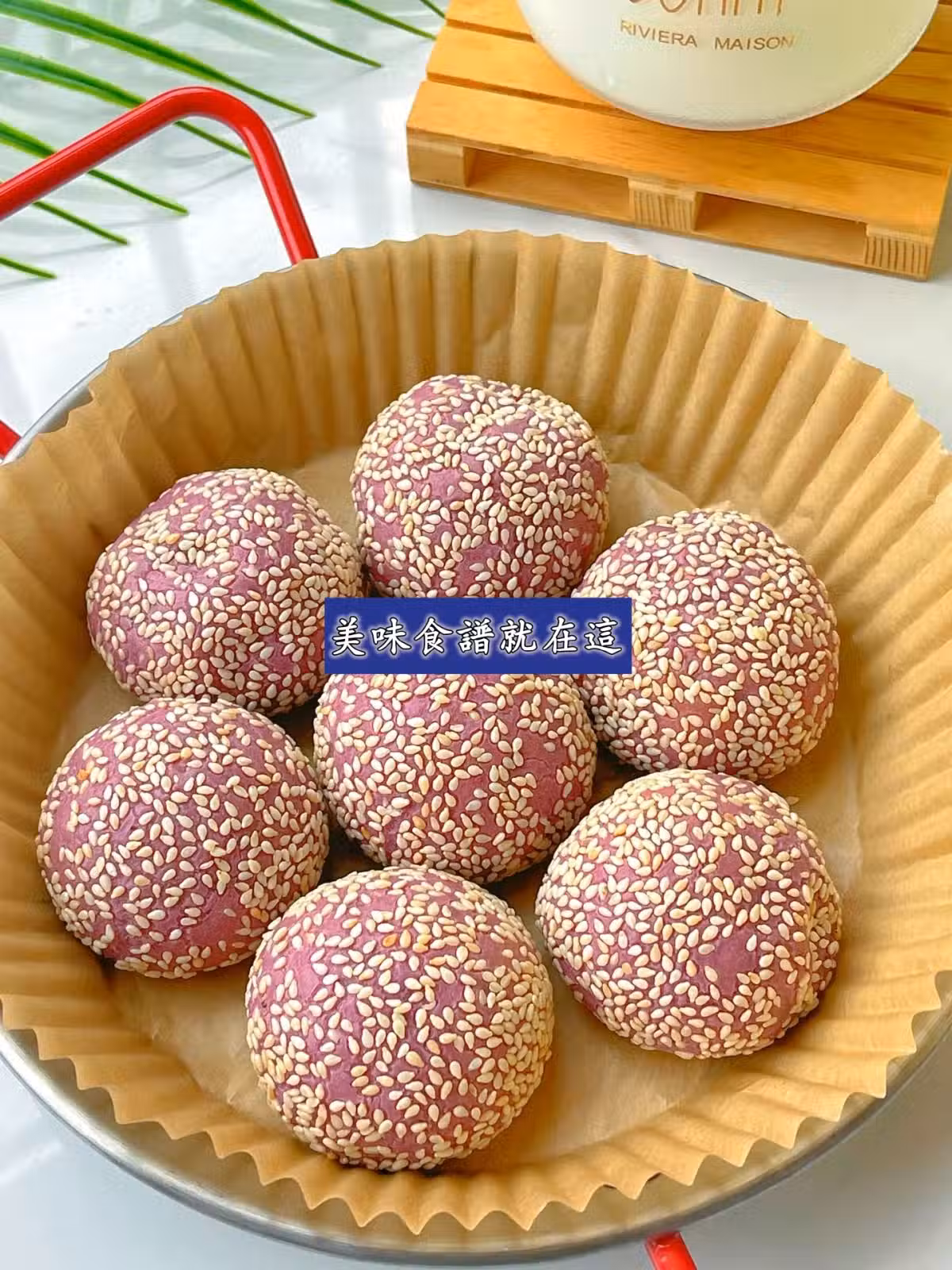 1️⃣芋頭紫薯蒸熟後加牛奶白糖搗成泥,加糯米粉,揉成麵糰,分成揉成40克左右的圓球,分別裹上芝麻