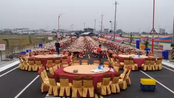 有網友在臉書社團「爆廢公社」貼文,他說自己參加有生以來看過最霸氣的婚宴,除了每桌都坐滿12人外,還開了整整570桌,直接把一條馬路佔光光!重點是,這樣豪奢的喜宴,不只不收禮金,還不斷邀請住在周圍的鄉親前來共襄盛舉,花錢絲毫不手軟啊!