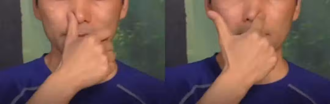 ③呼完接著還是讓右鼻孔吸氣,吸完再讓拇指抵住右鼻孔,讓左鼻孔再呼出。