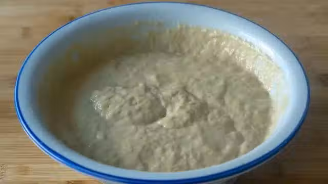 3、用保鮮膜蓋起來醒發至兩倍大,現在來看一下,這個麵糊明顯的變大了,攪拌排氣,喜歡吃紅棗的現在可以加進去