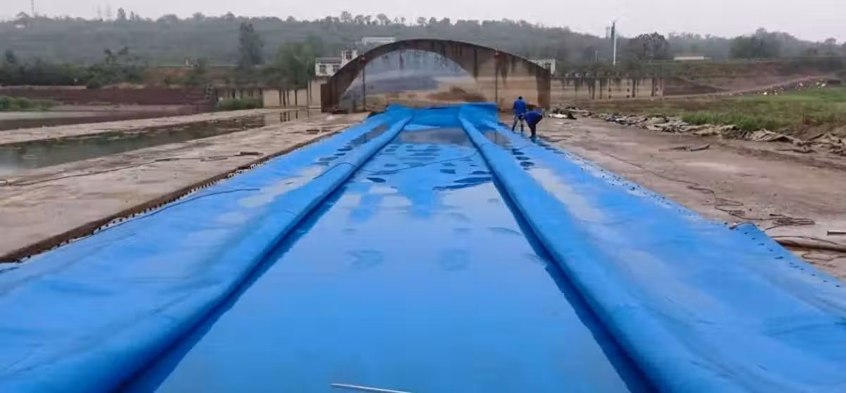 部署當中的橡膠水壩