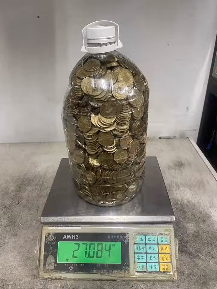 存了4大桶「50元硬幣」重達108公斤!總價值揭曉他驚訝:居然沒半枚是假的!