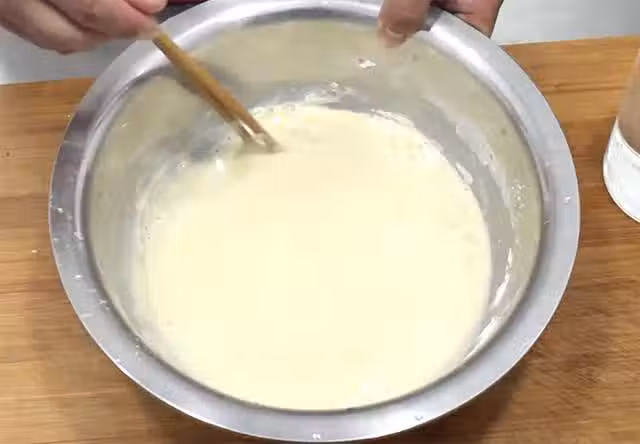 3.倒入切好的小茴香,加入食用油5克,香油3克,加油能防止煎制時粘鍋,而且煎出的餅色澤鮮亮好看,把所有的原料攪拌均勻,麵糊就調好了。