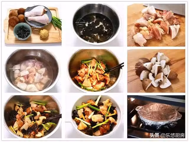 第七步:待雞肉腌好後,把香菇和木耳放入其中拌勻。