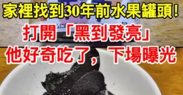 在家裡找到30年前的水果罐頭, 打開 「黑到發亮」他好奇吃了,結果…