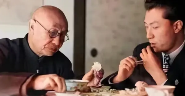 1958 年閻錫山同兒子共進早餐,幾碟小菜配饅頭,父子間已有隔閡