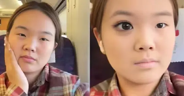 女生起晚捷運上趕妝「妝前妝後」堪比換頭,旁邊乘客看呆:這手比美顏還強大