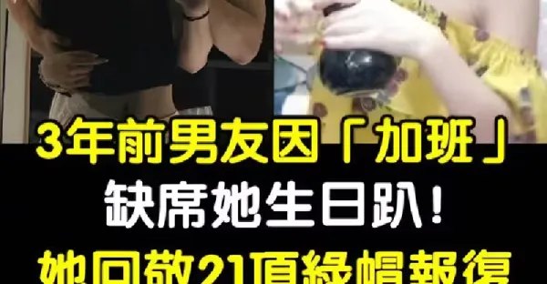 三年前男友「加班」缺席生日趴!她回敬「21頂綠帽報復」吐細節曝一恐怖心理,網友嚇歪:天啊好噁心