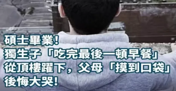 碩士畢業!獨生子「吃完早餐之後」從.頂.樓.躍.下「一摸口袋」家人後悔大哭…
