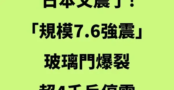 快訊/日本又震了!「規模7.6強震」玻璃門爆裂,超4千戶停電, 傷亡狀況曝