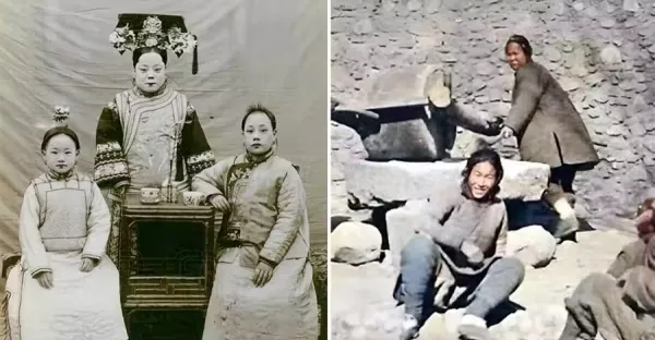 晚清老照片:光緒妃子們天姿國色,小腳婦人推石碾,地主炕頭數錢