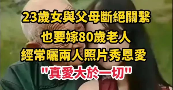 23歲女與父母斷絕關繫也要嫁80歲老人,經常曬兩人照片秀恩愛 "真愛大於一切"