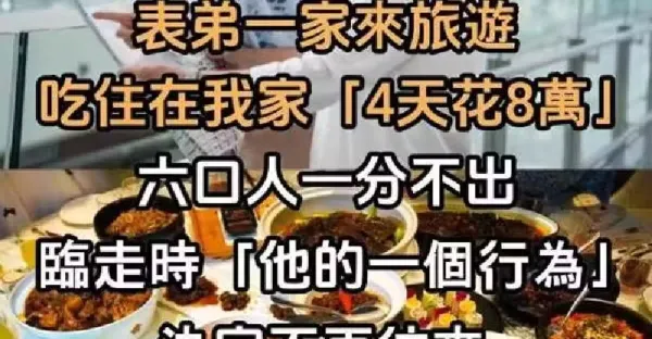 表弟一家來旅遊!吃住在我家「4天花8萬」六口人一分不出 臨走時「他的一個行為」決定以後不再往來