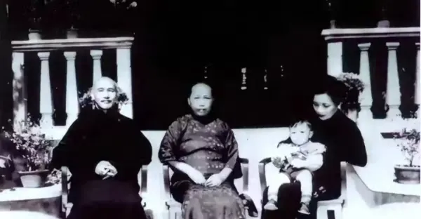 37年,蔣介石和兩任妻子的合影,毛福梅坐在主位,宋美齡表情複雜
