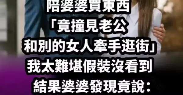 陪婆婆買東西「竟見老公和別的女人牽手逛街」! 我太難堪假裝沒看到,結果婆婆發現竟說:「別怕,讓我來!」