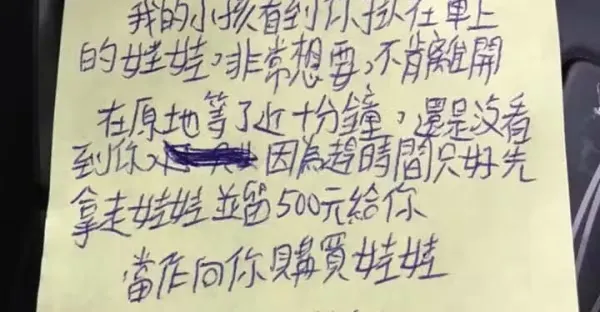 重機後座掛娃娃!家長喊小孩想要「留完紙條就拿走」,車主傻眼「調監視器找到人後」決定算了😮