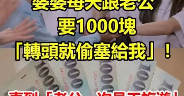 婆婆每天跟老公要1000塊「轉頭就偷塞給我」直到「老公一次員工旅遊」真相讓我淚崩:婆婆真把我當女兒!