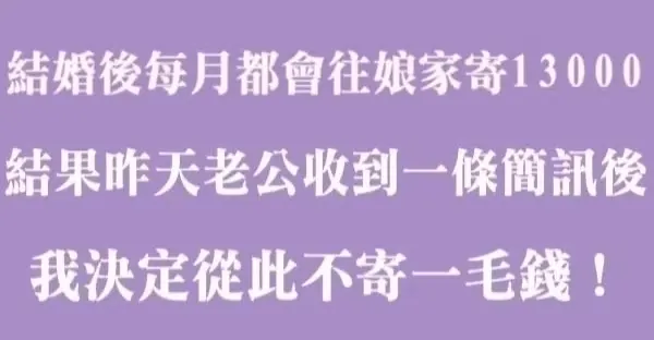 婚後每個月我往娘家寄一萬三千元,結果看到昨天老公收到的一條簡訊後,我決定從此不寄一毛錢 ‼️