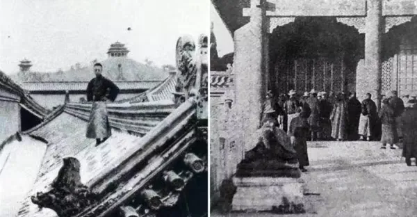 溥儀被趕出皇宮的全程:圖1溥儀跑至屋頂,圖4亂成一團的龍床